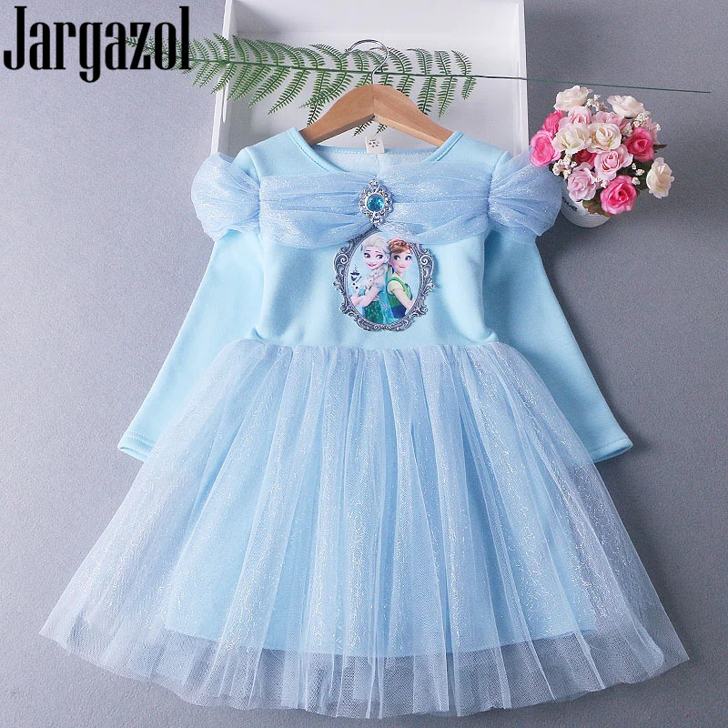 Jargazol Icing Anna Elsa Princess Costume Birthday Autumn Long Sleeve Dresses for Girls Vestidos Li